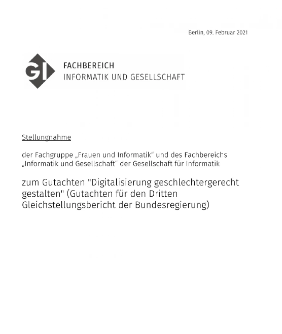 Gesamte Stellungnahme: https://gi.de/fileadmin/GI/Allgemein/PDF/Stellungnahme_Dritter_Gleichstellungsbericht.pdf