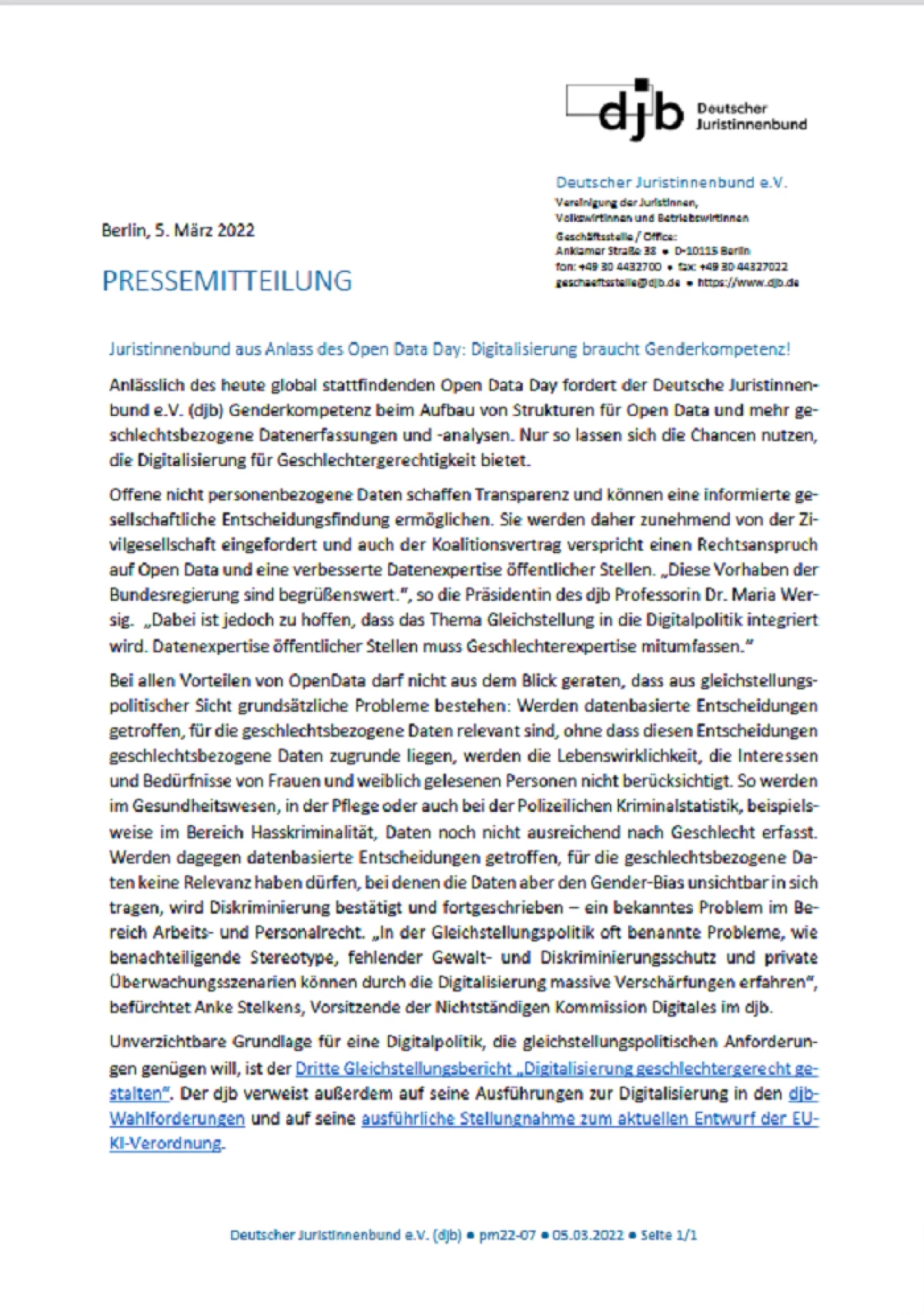 Link zur Pressemitteilung: https://www.djb.de/presse/pressemitteilungen/detail/pm22-07