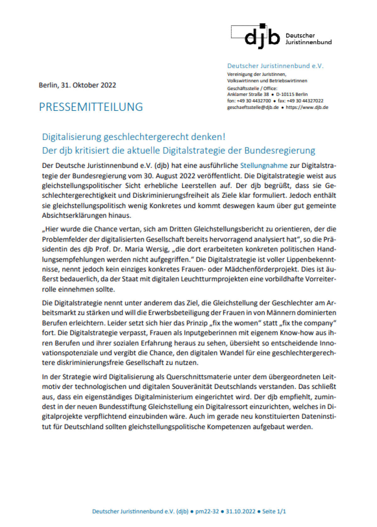 Link zur Pressemitteilung: https://www.djb.de/fileadmin/user_upload/pm22-32_Digitalstrategie_der_BReg.pdf